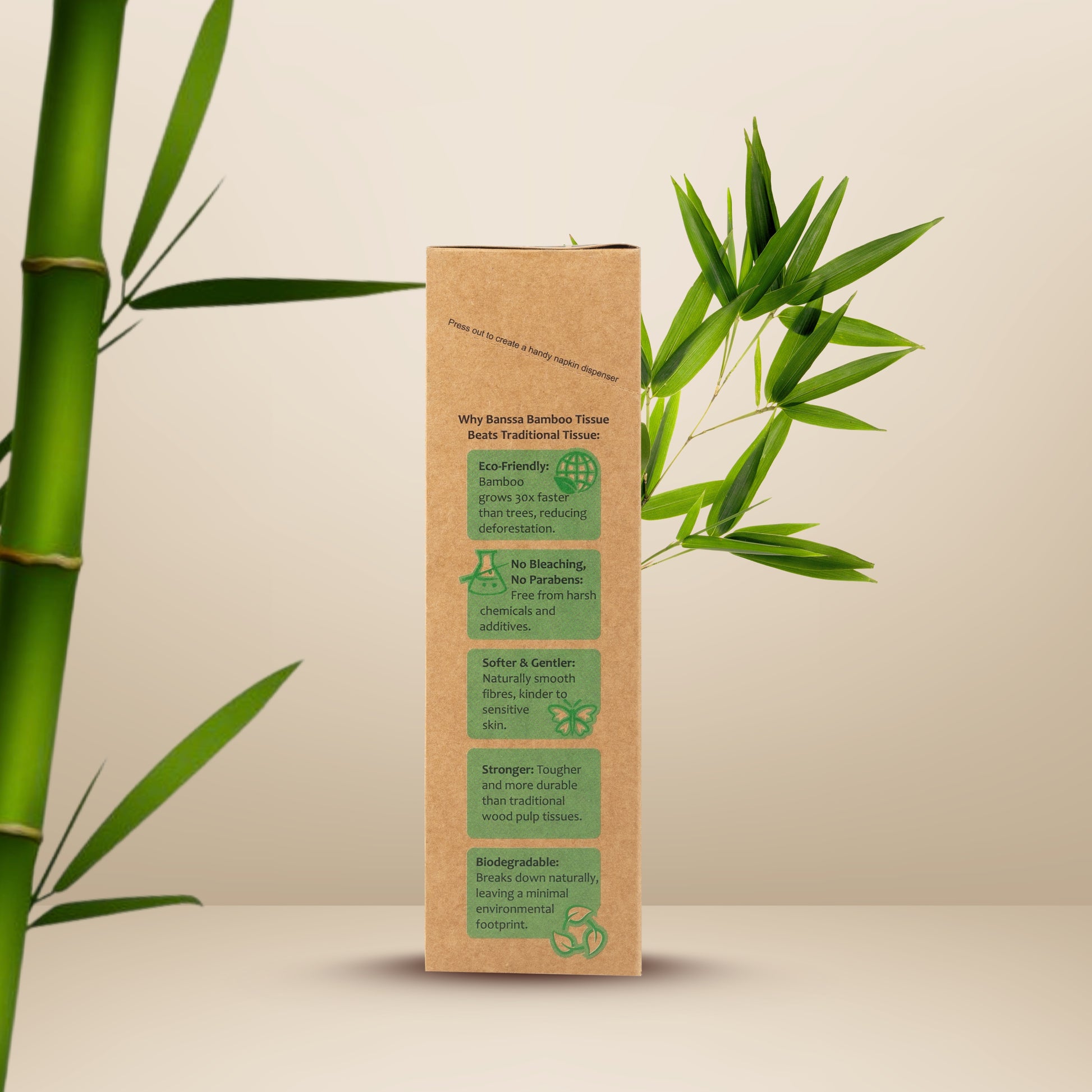 Go big and go green! Our Large Bamboo Tissue Napkins are here to handle life’s messier moments—with extra surface area and extra sass. Crafted from planet-loving bamboo and free from harsh chemicals or bleaching, these napkins are soft on skin and tough on spills. Perfect for those who like their dinners hearty and their cleanups effortless—at home, at events, or even in the wild world of toddlers. When size matters, and sustainability does too—Banssa’s got you covered. Literally.